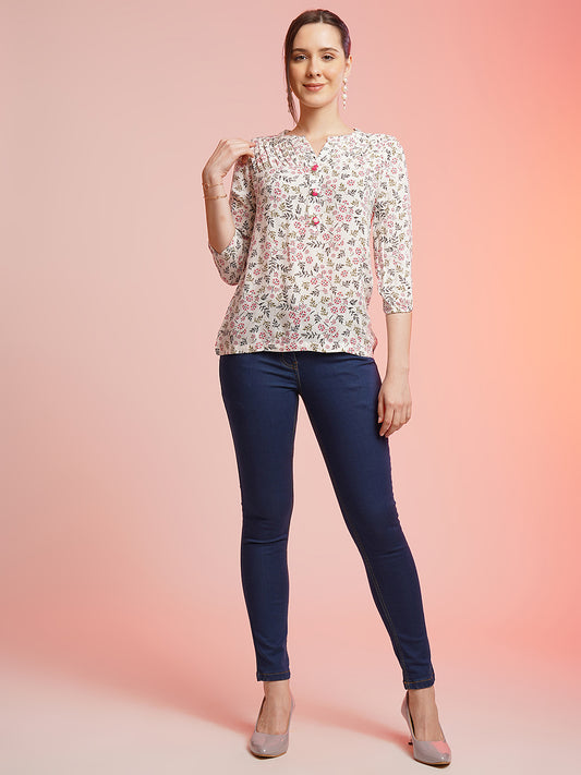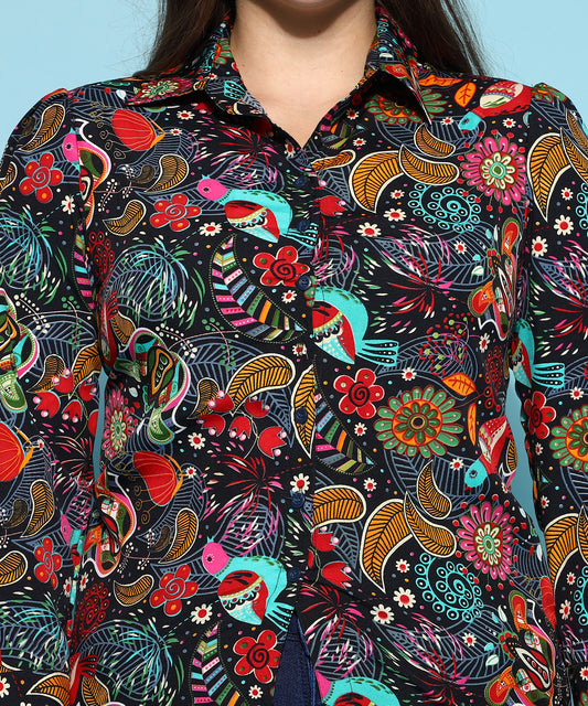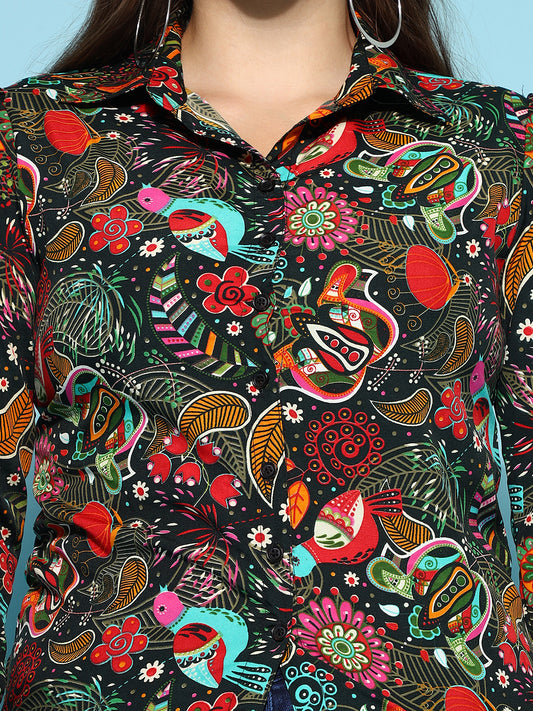 ANUSHIL Printed Women's Casual Shirt - Stylish Floral Print, Regular Fit, and Comfortable Cotton Fabric with Puff Sleeves
