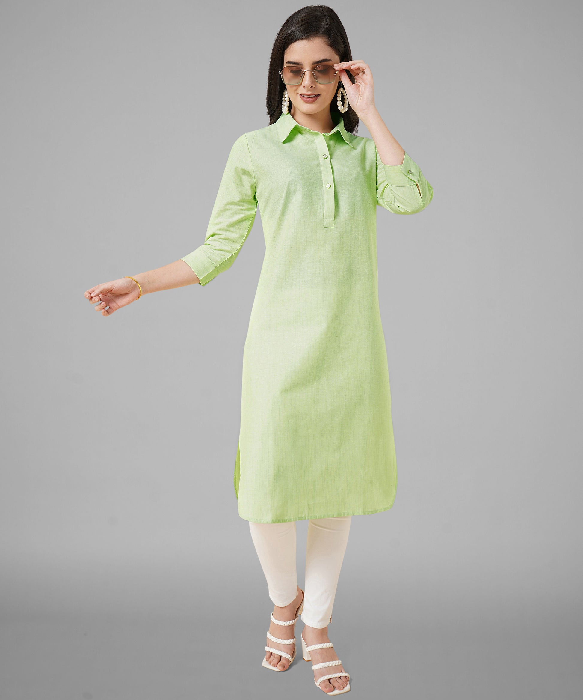 Cotton Kurta For Women Collar Design Pattern with Button Style, Green