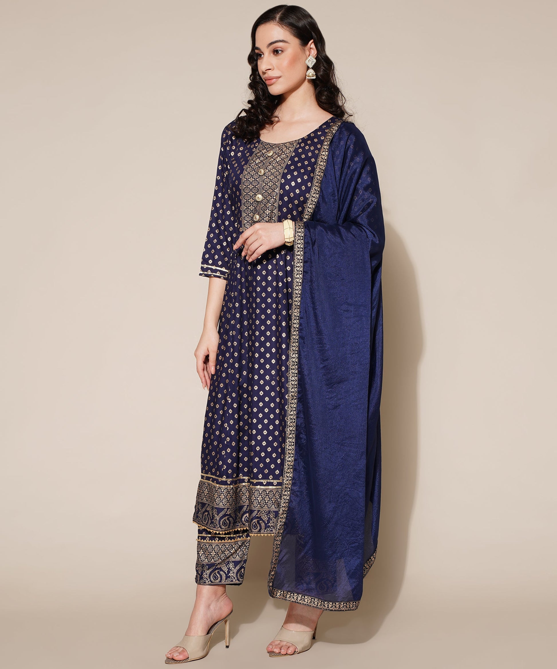 Anushil Anarkali Kurta Set with Dupatta Blue