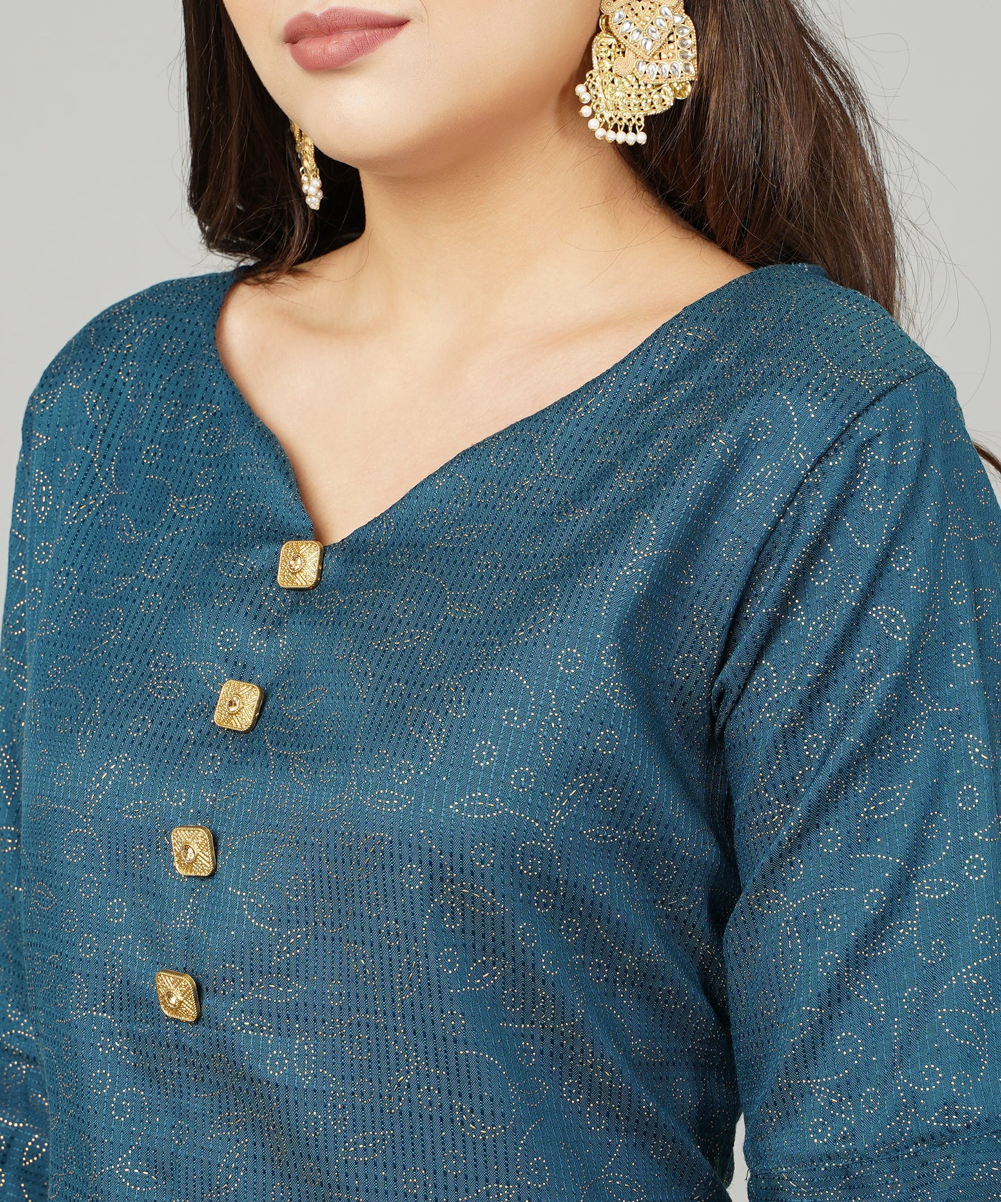 - A Blue color straight kurta with gold print give awesome look and its fabric makes feel comfortable.