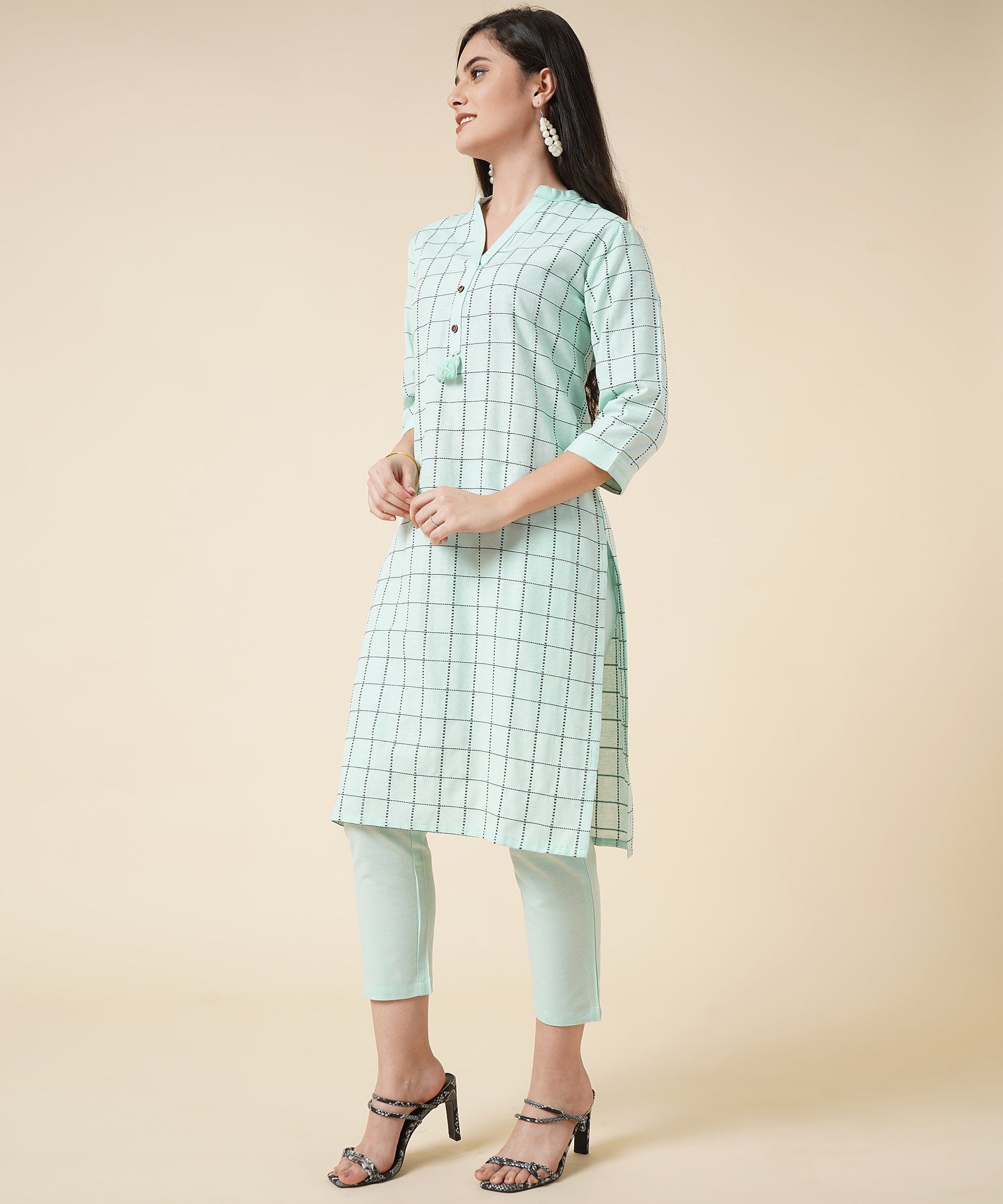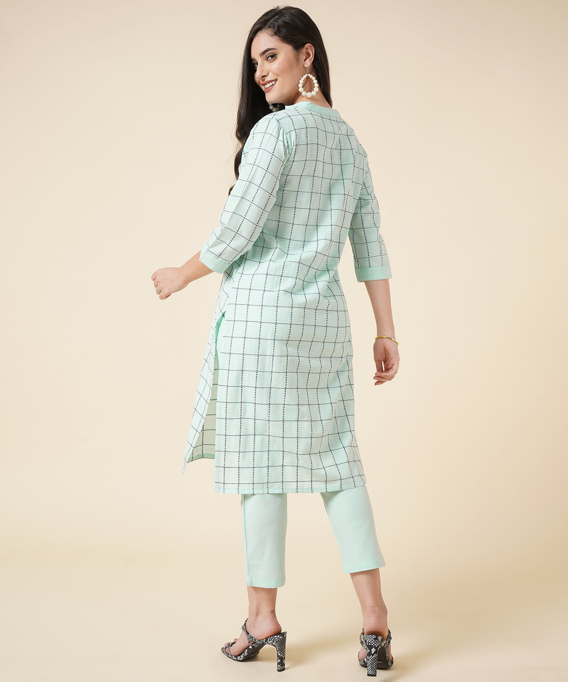 Ethnic Kurta Set With Pants, Check Design Pattern, Blue