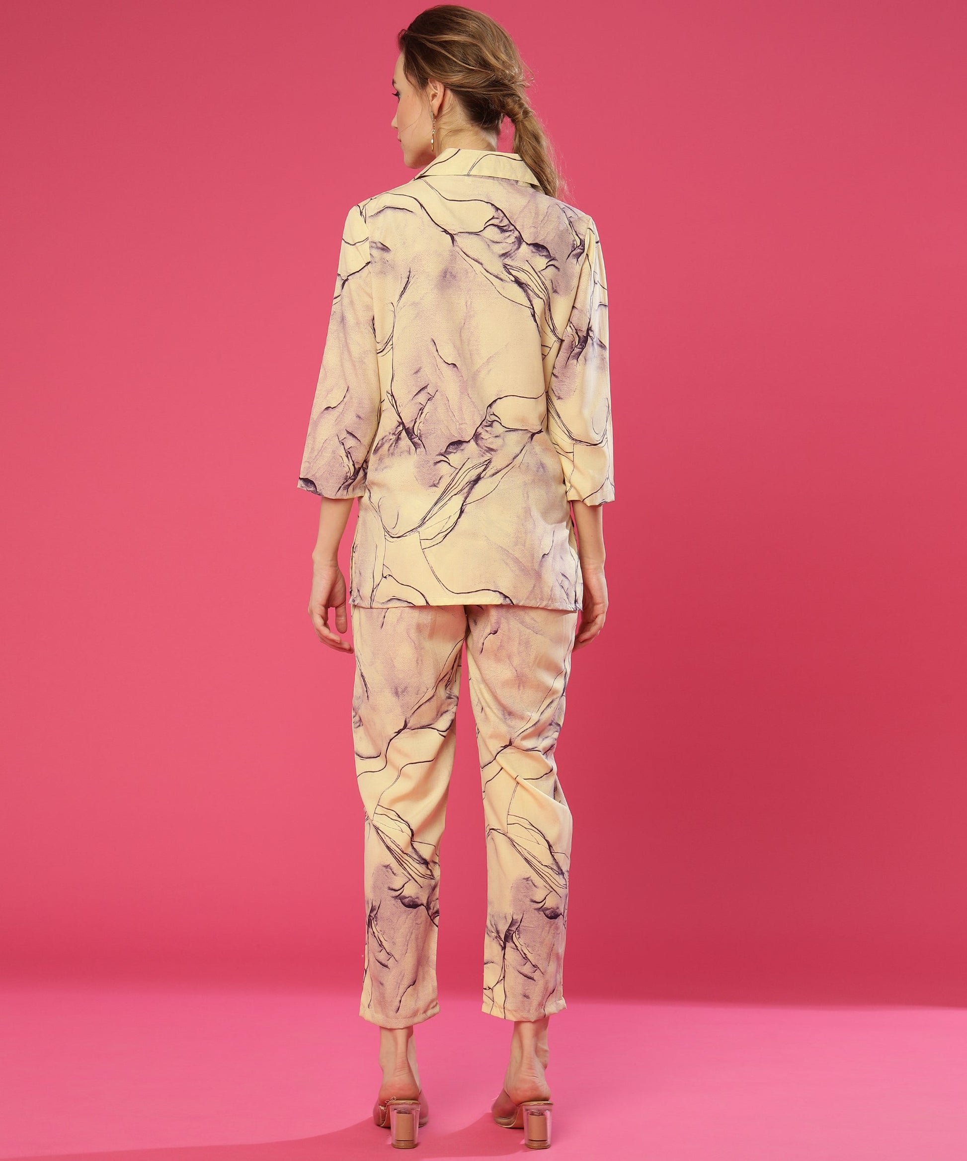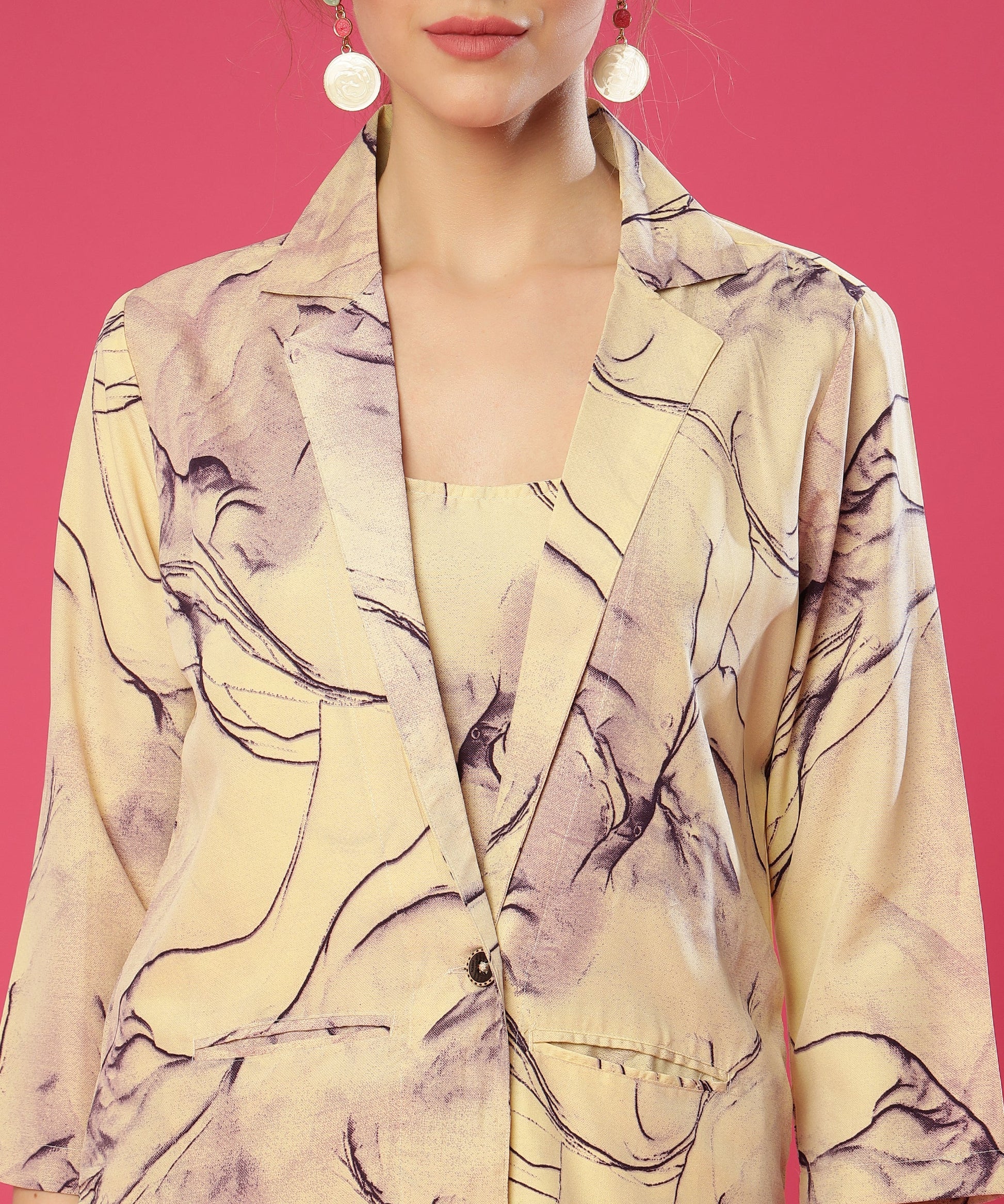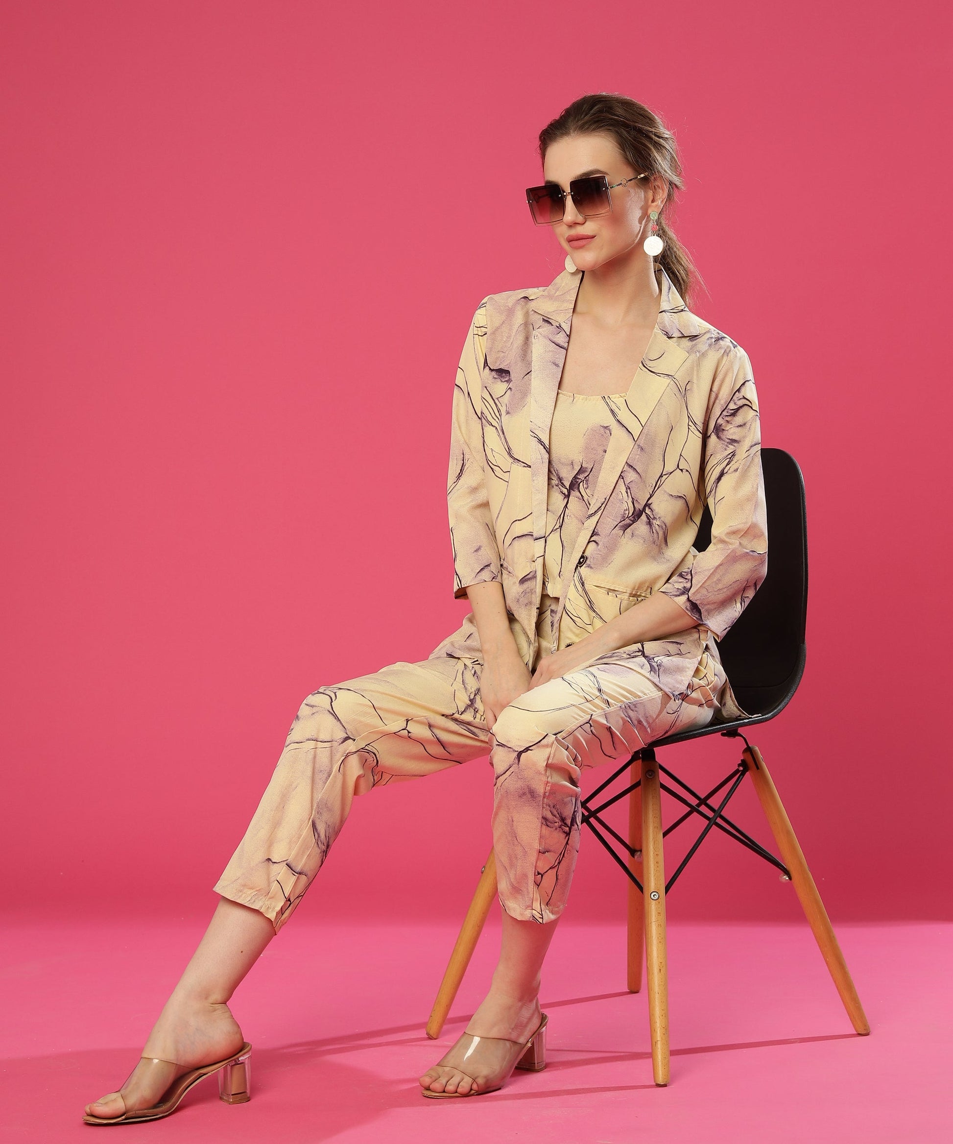 ANUSHIL Stylish Co-ord Set for Women - Printed Crop Top with Pants and Blazer, 3peice Co-ord Set for Casual Wear (Purple)