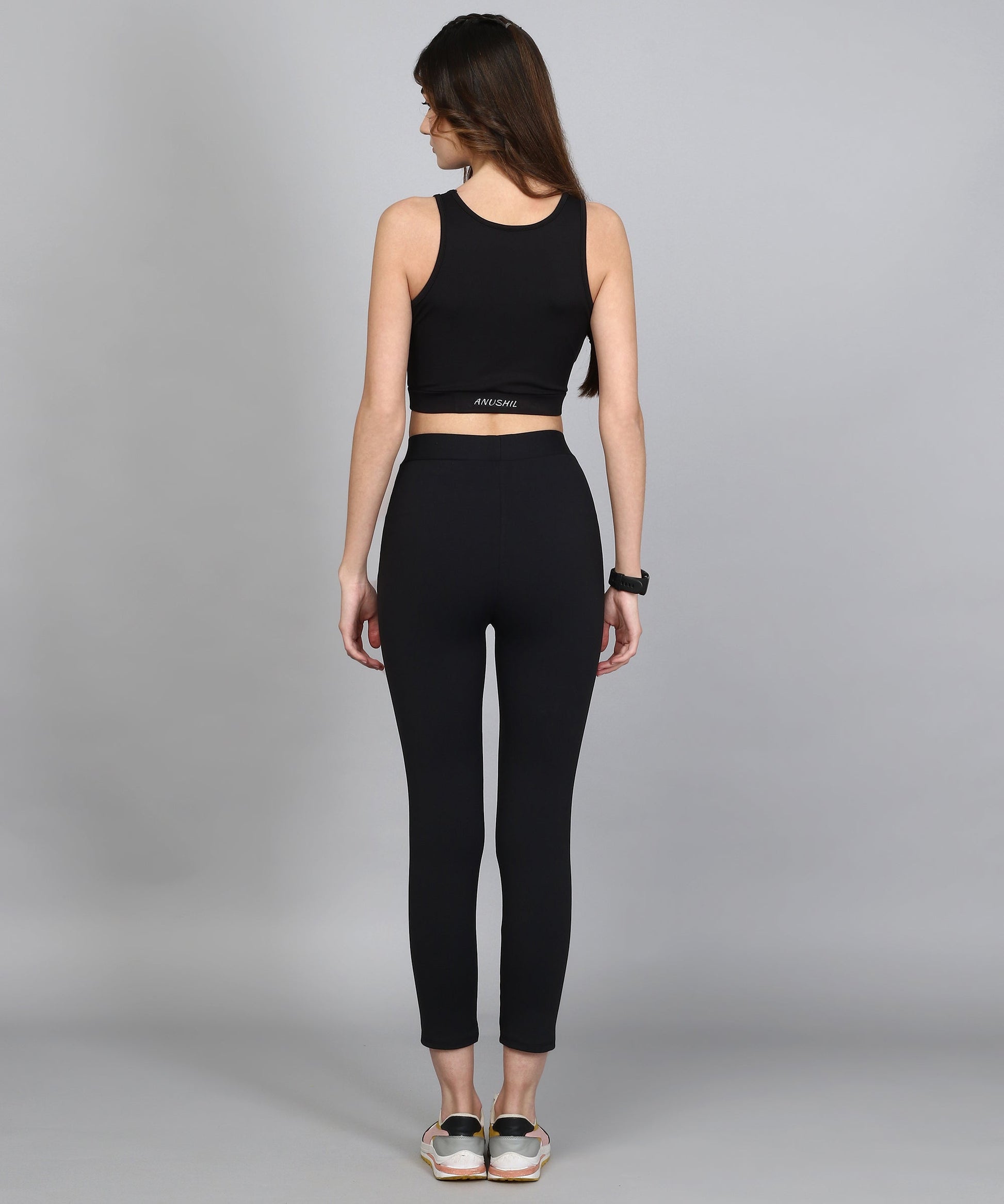 ANUSHIL Women Solid Cotton 4 Way Strechable Non Wired Sports Bra (Black)