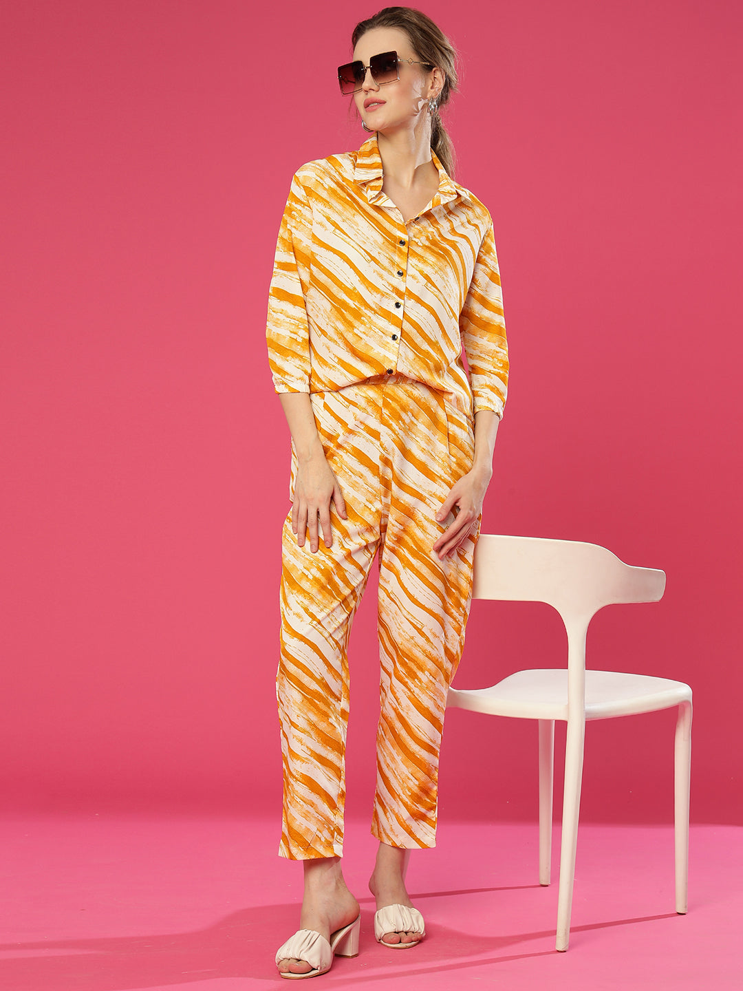 ANUSHIL Women's Co-ord Set | Effortless Elegance in Matching Top and Bottom | Printed Co-ord Set, Casual Wear, Outfit (Yellow)