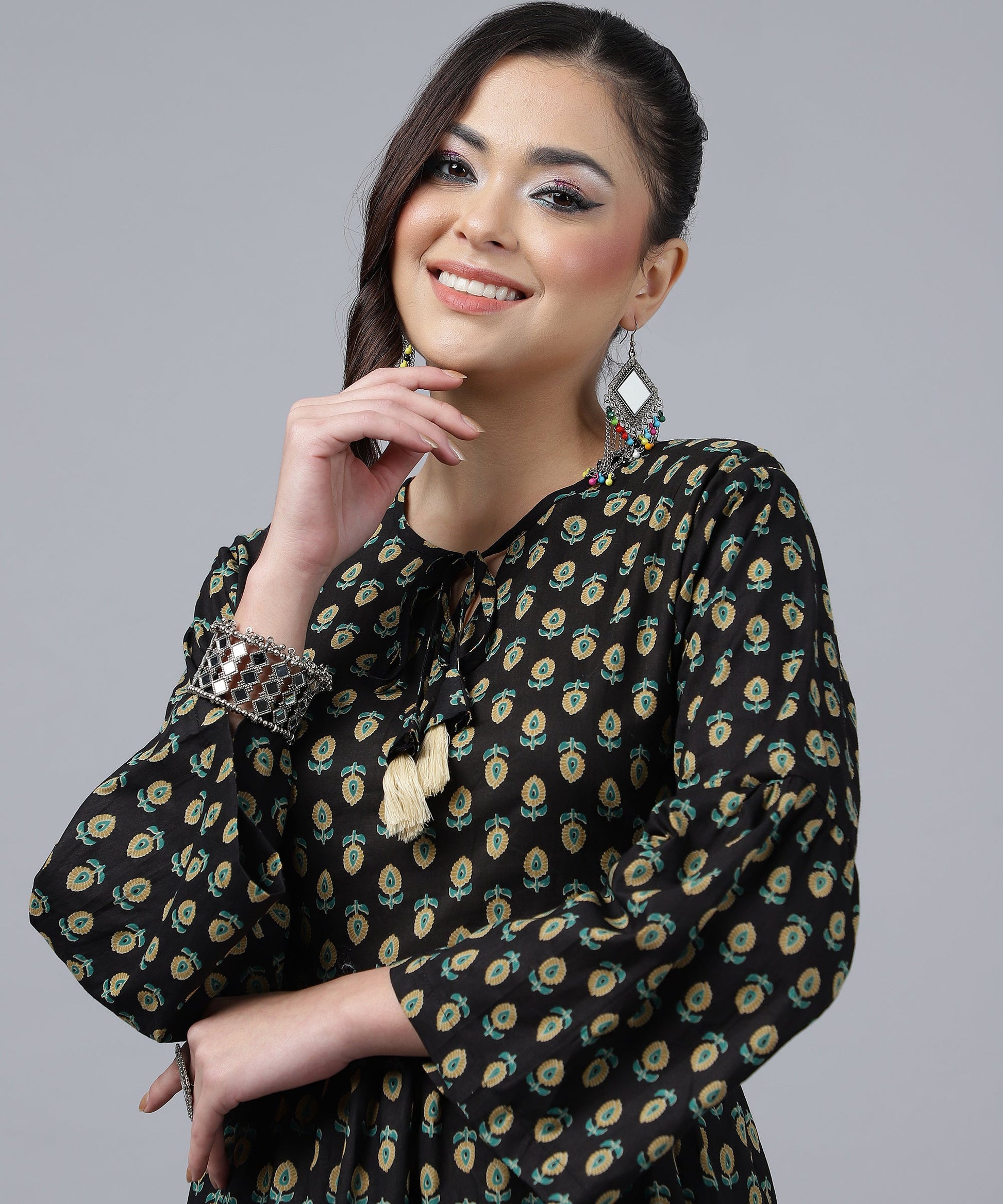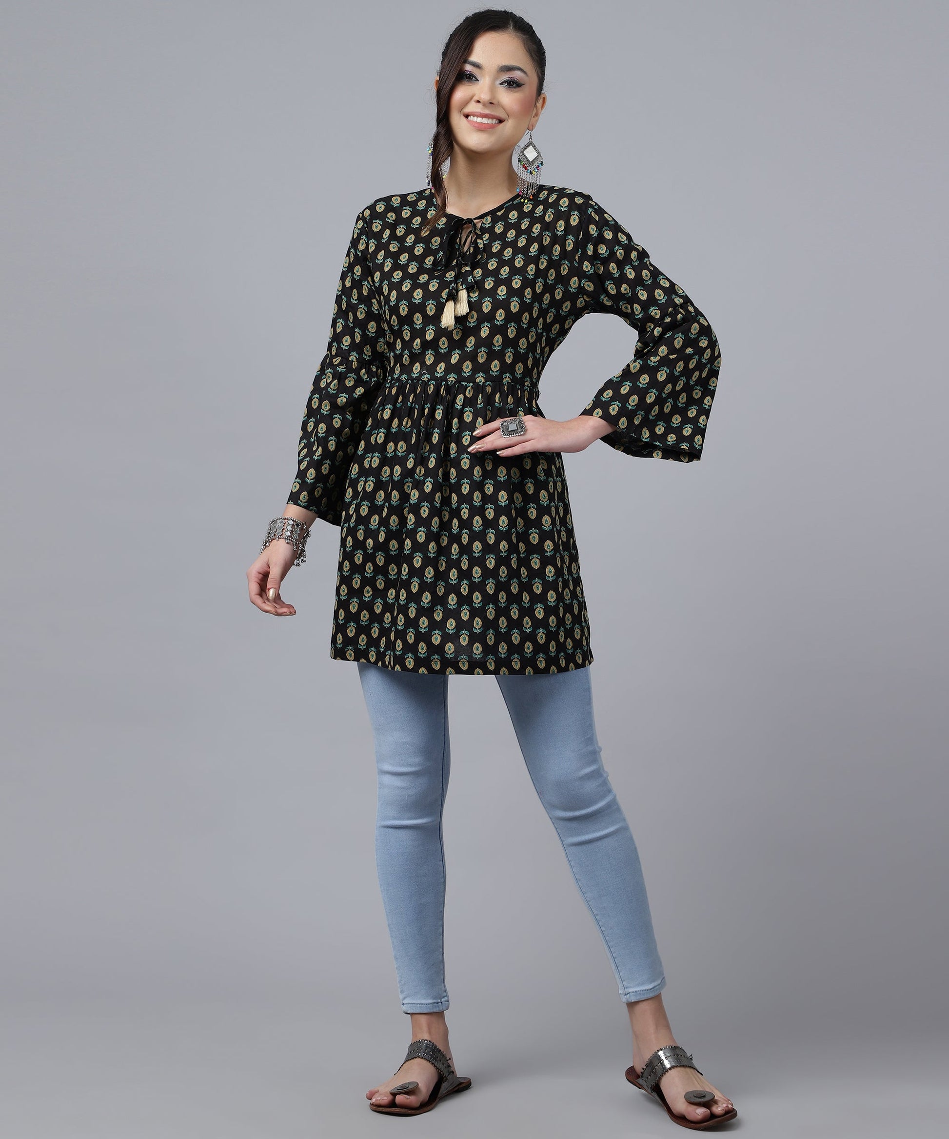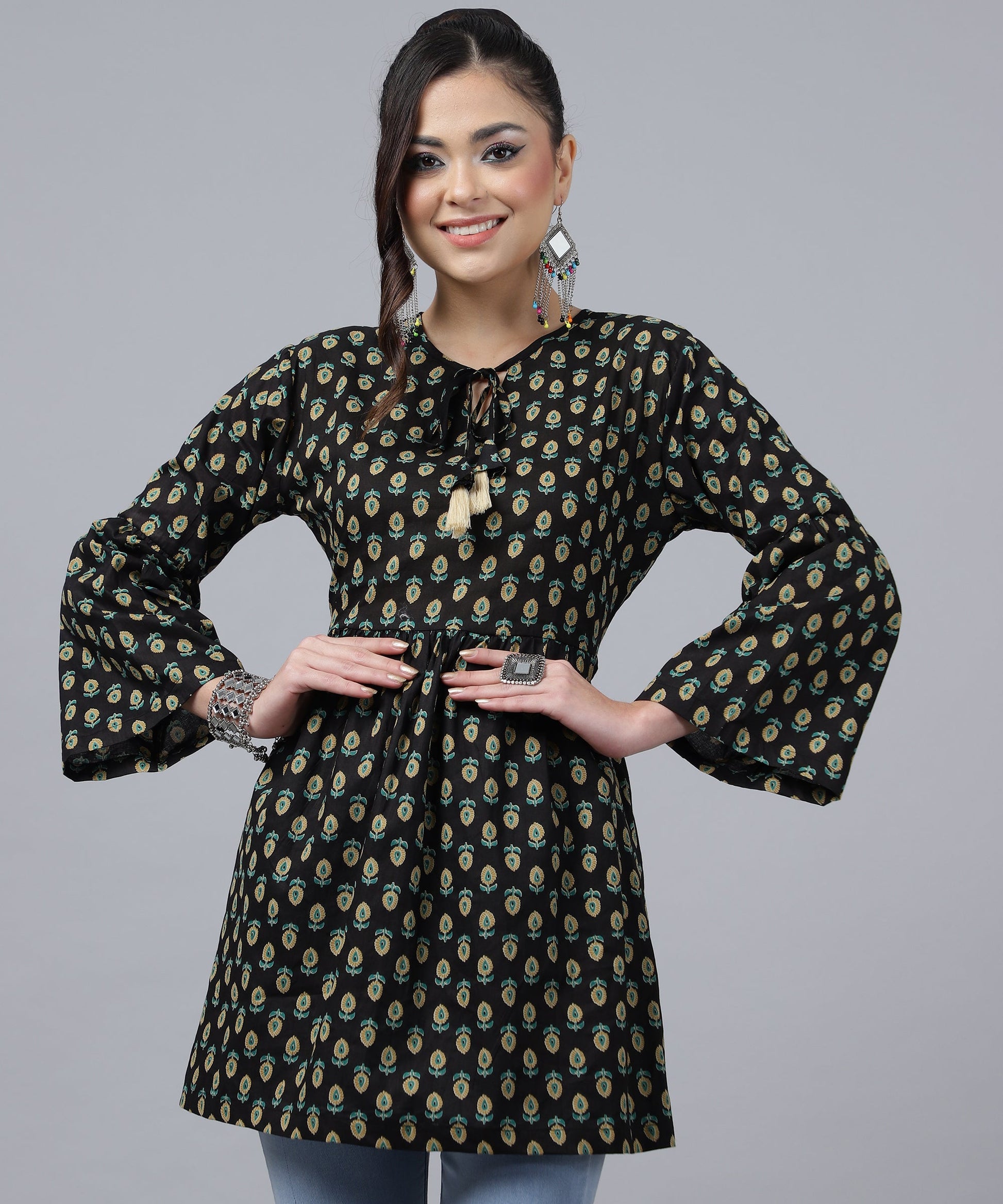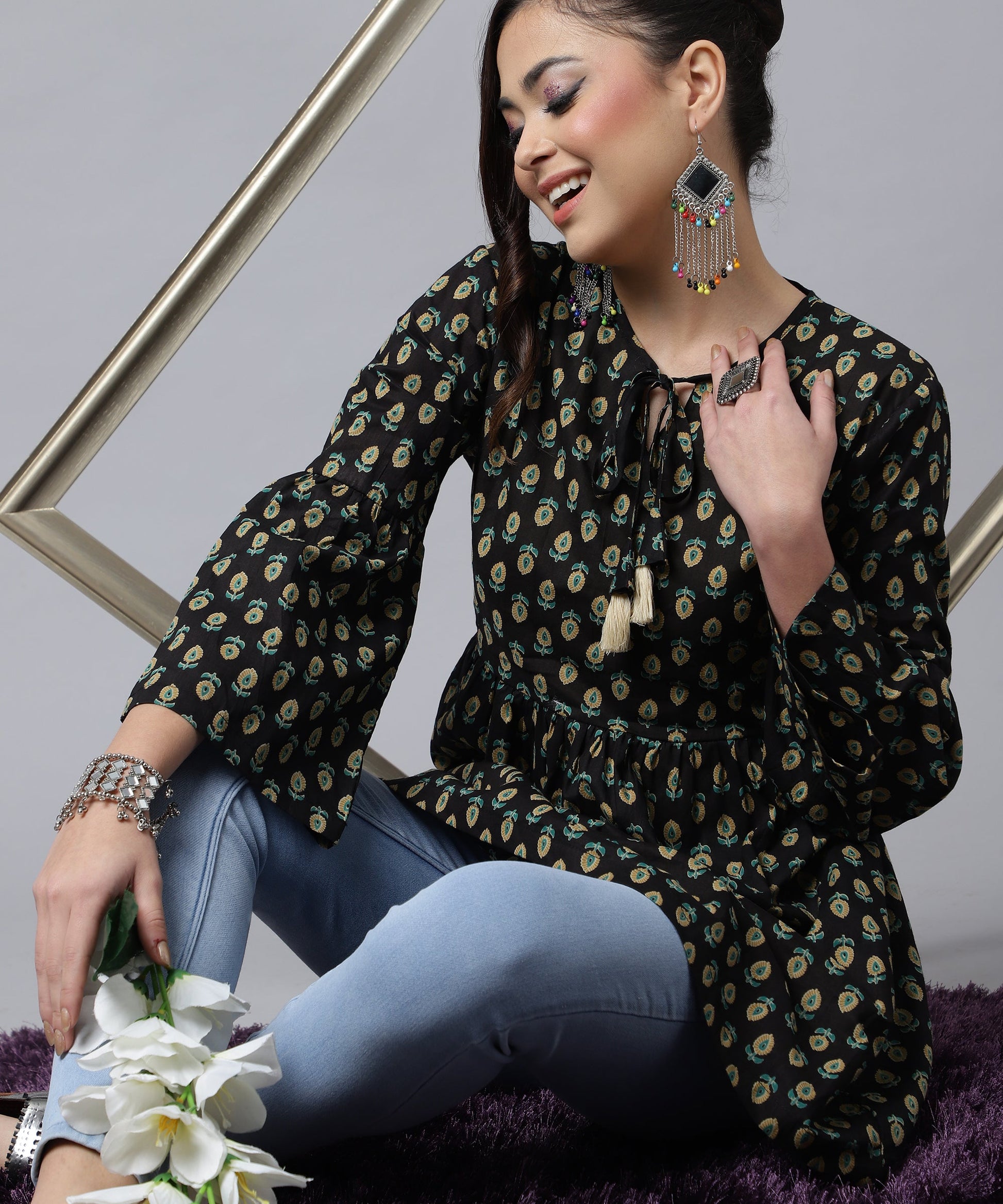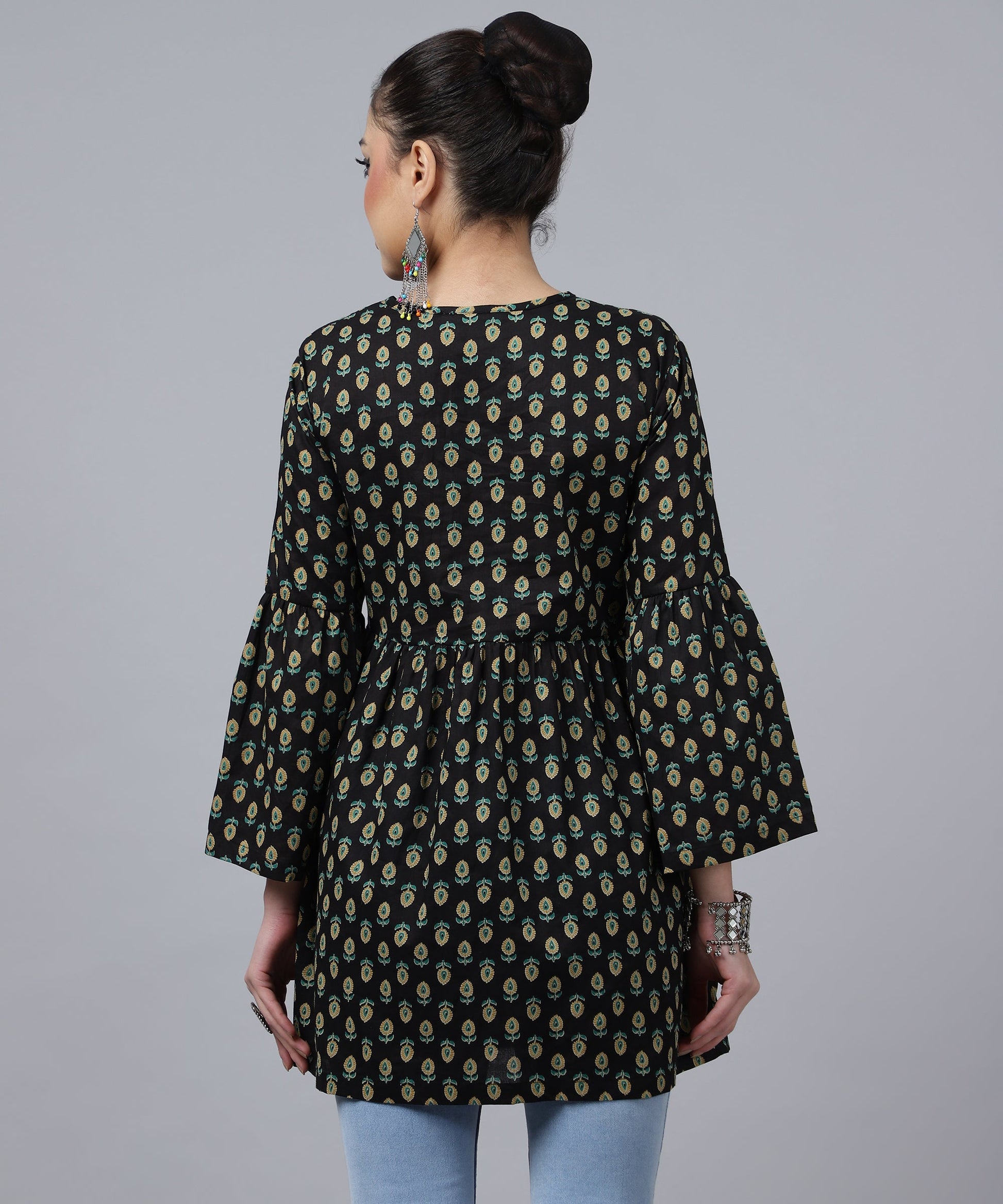 ANUSHIL Women's Cotton Cambric Printed Peplum Top - Stylish and Comfortable-Ideal for All Seasons(Black)