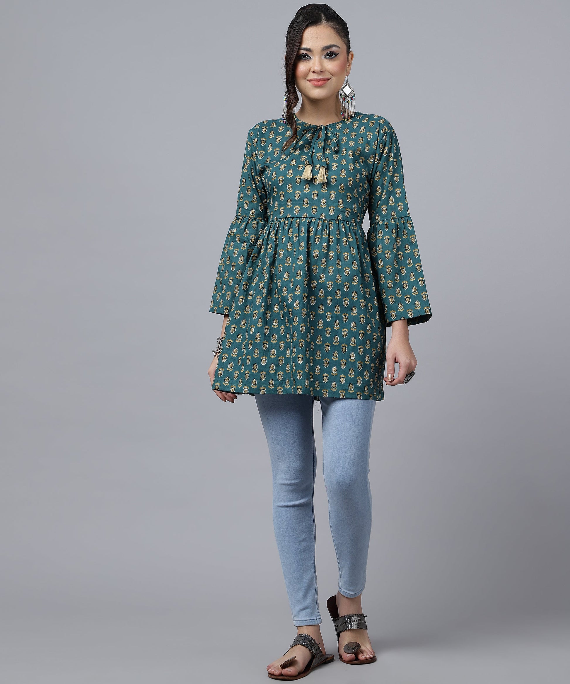 ANUSHIL Women's Cotton Cambric Printed Peplum Top - Stylish and Comfortable-Ideal for All Seasons(Green)