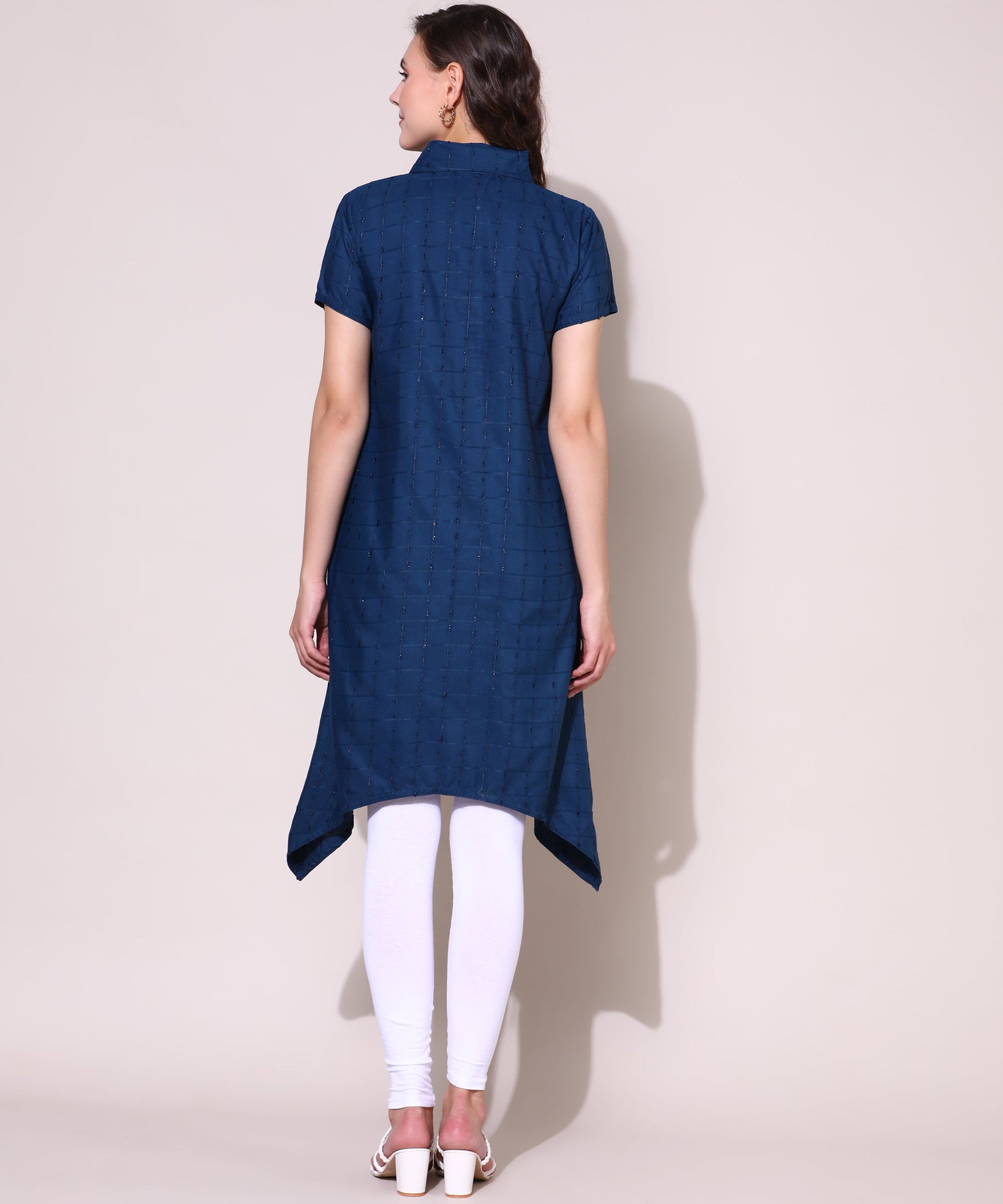 Check Style Stylish Lurex Weave Designer Kurti , Blue