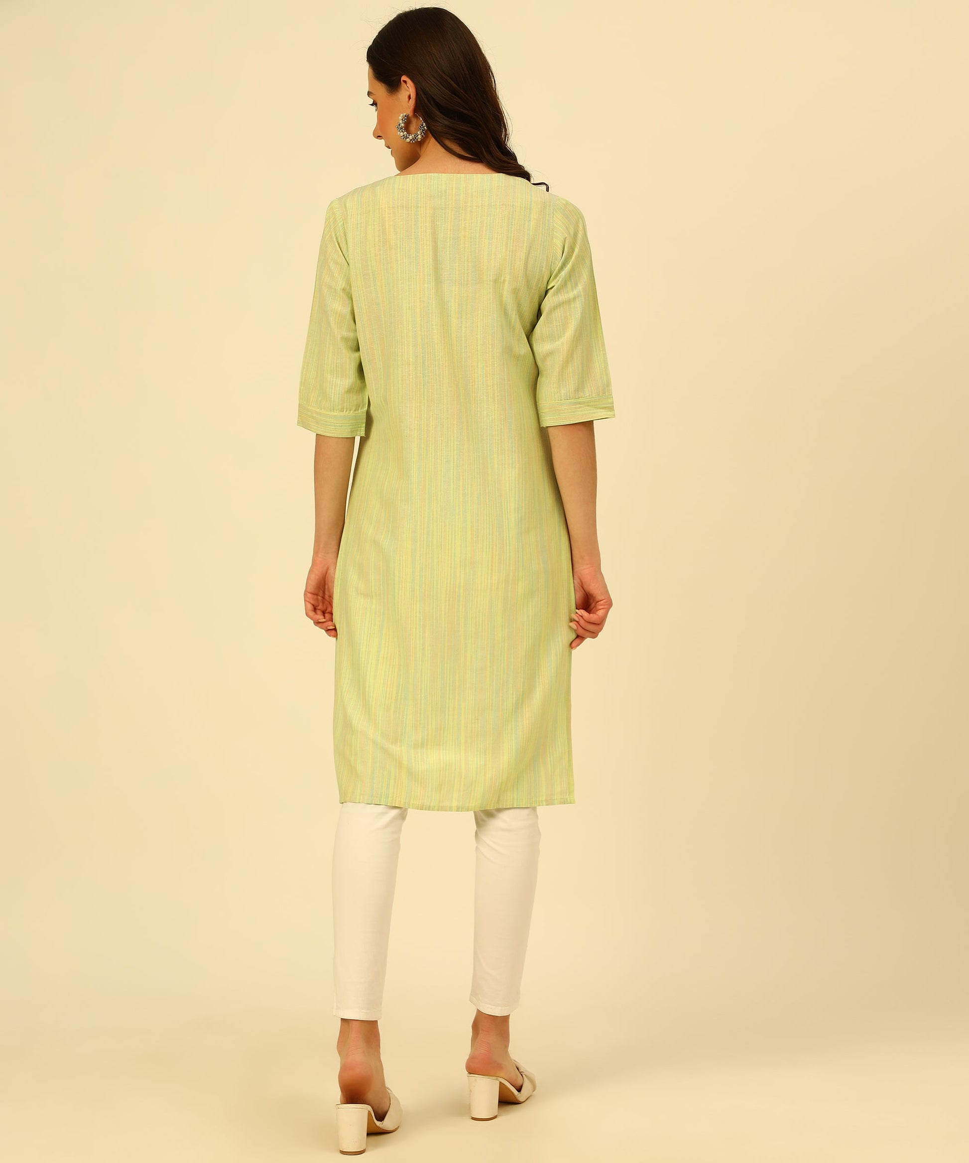 Cotton Self Weaved Multi Colour Thread Kurta Design, Green