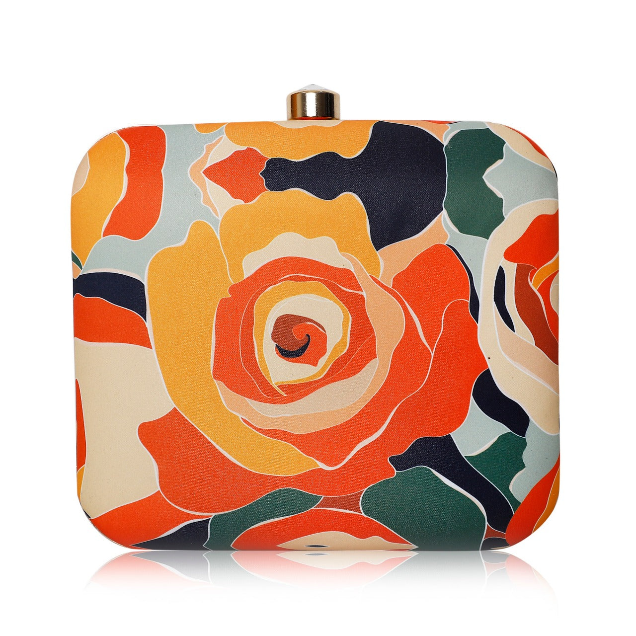 Anushil Digital Clutch Floral Rose Printed Design Box Party Wear Clutch Handbags For Girls & Women Trending and In Fashion Having 1 Main Compartment With Click Closure Comes With A Detachable Sling Strap Suits Women In All Occasions whether it a family function such as birthday,house welcome, kitty party, family dinner or any festival or offical party.