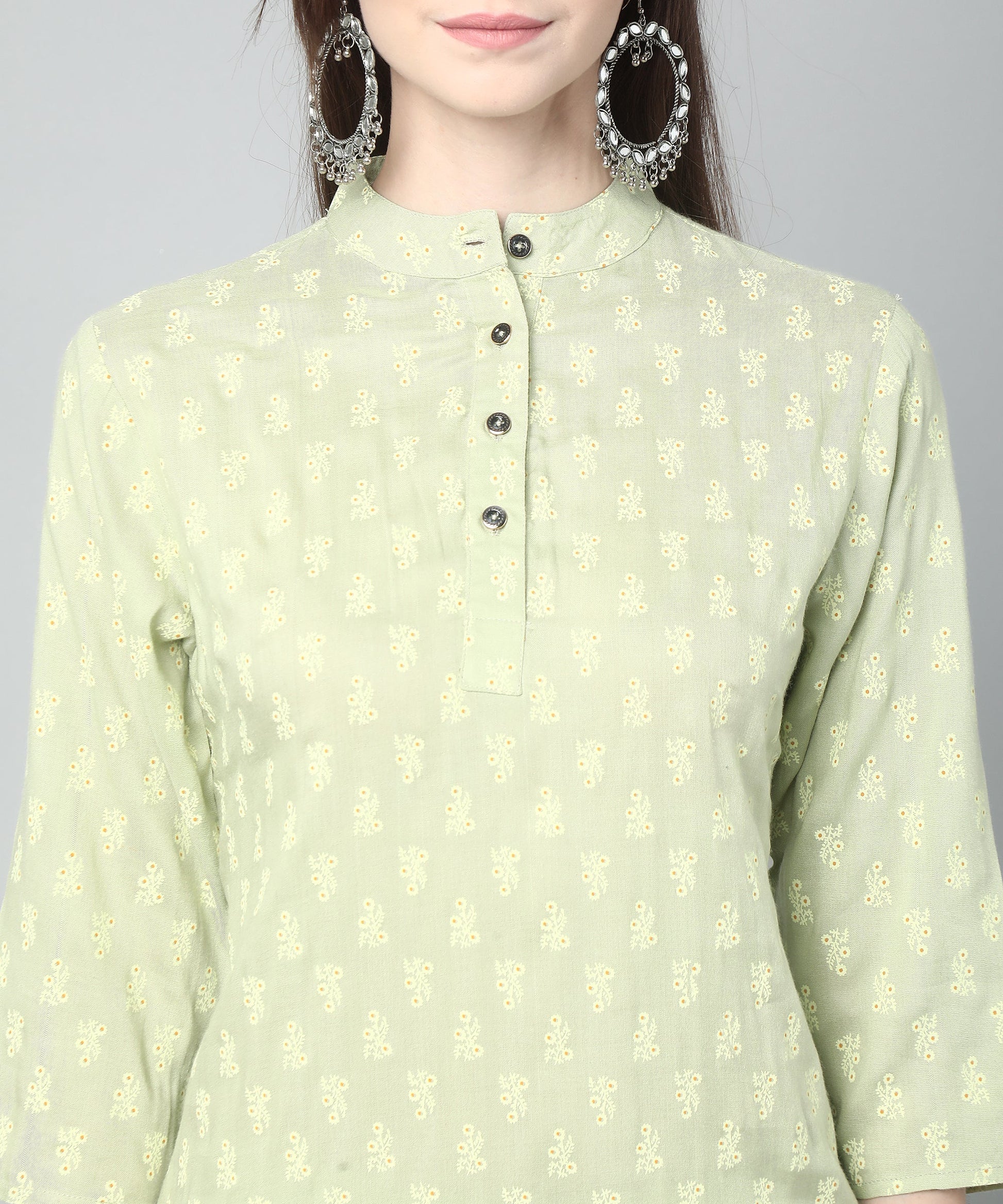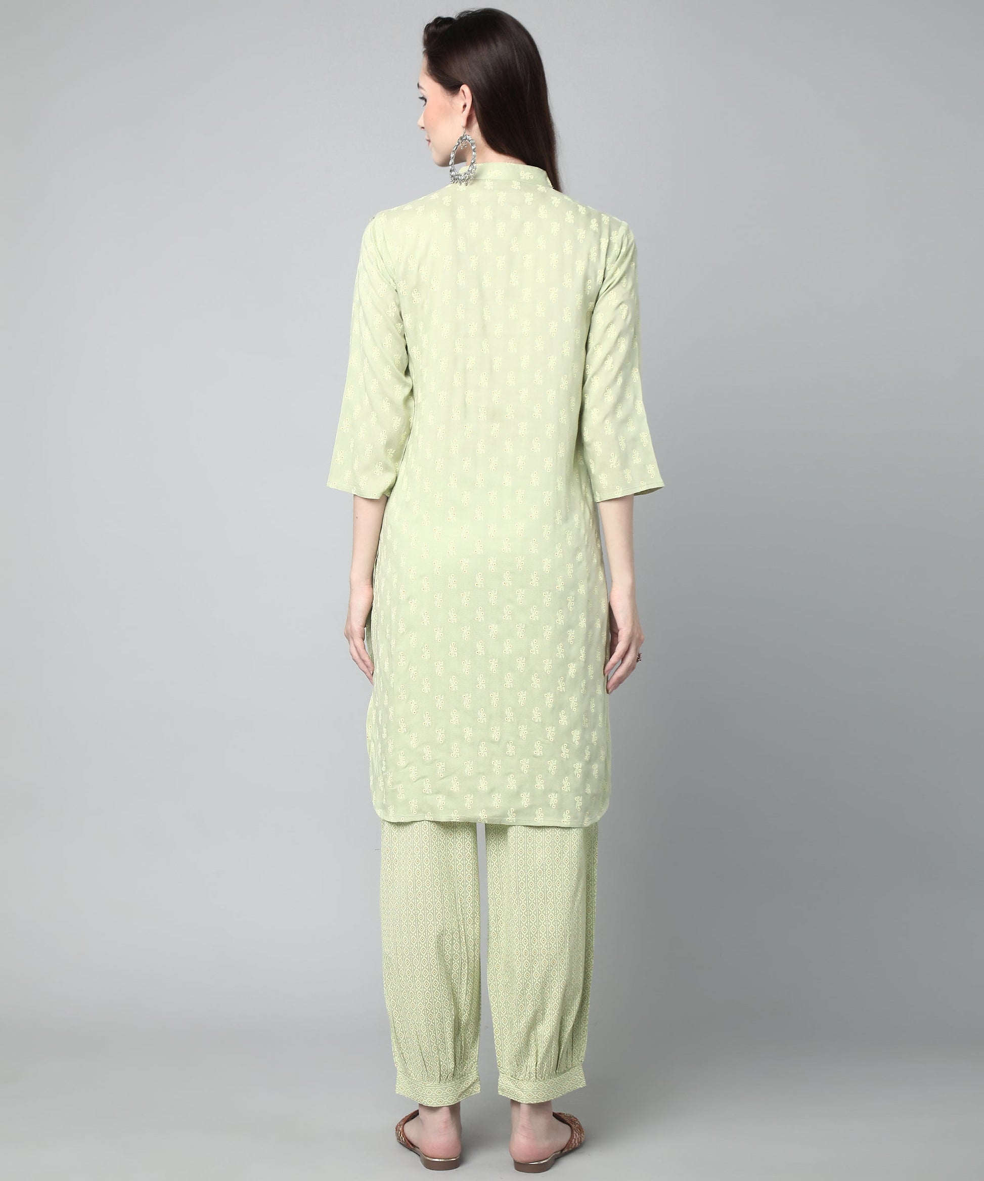 Printed Cotton Rayon Patiala Set, Light Green