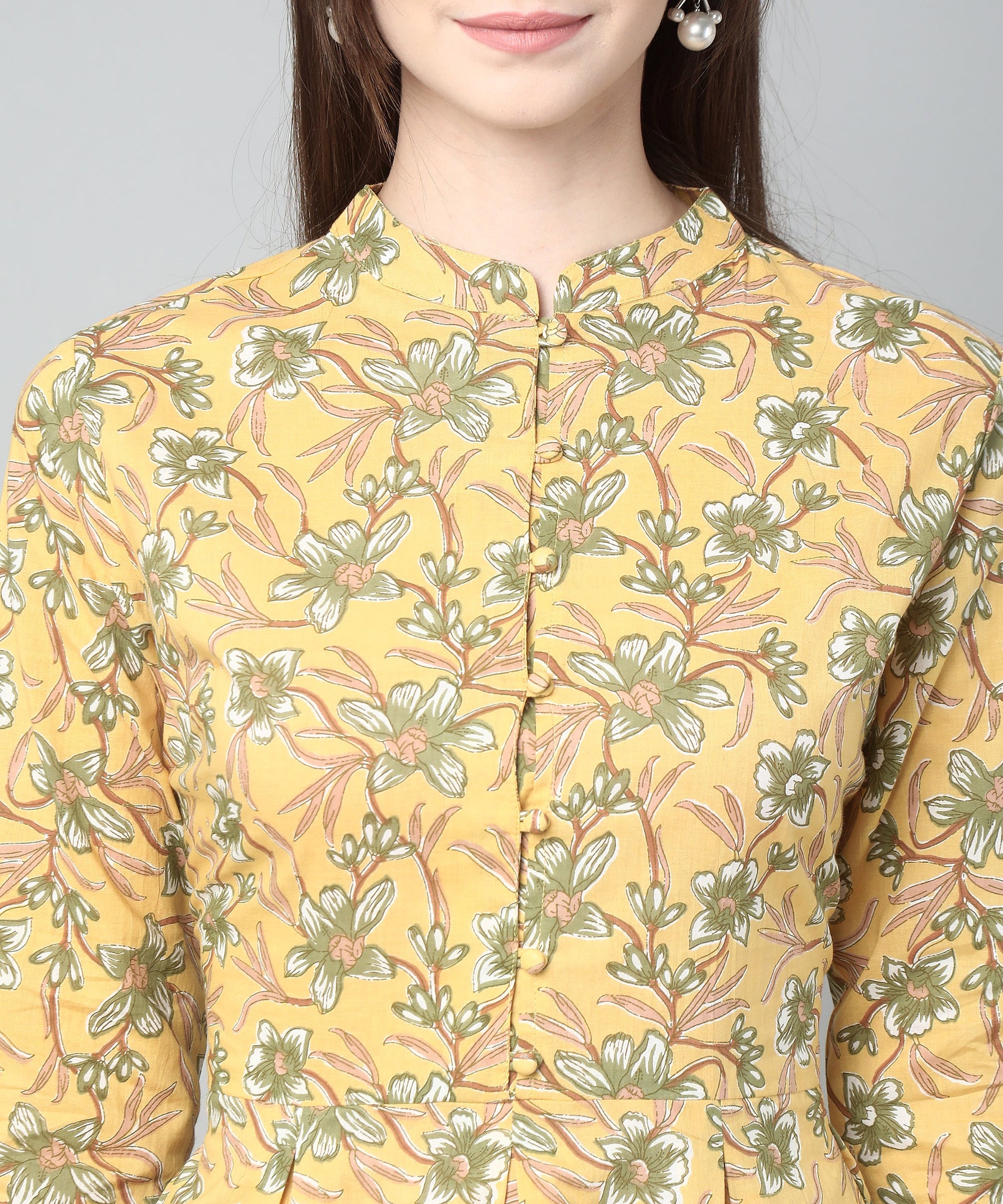 This Printed Pablum Style Dress by Anushil makes your look more stylish and smart. The fabric used is pure cotton with soft feel and easy to carry. The fabric buttons make the dress more elegant. You can wear it on every occasion, functions, party, office everywhere. Its available in 5 colours in S, M, L, XL, 2XL sizes