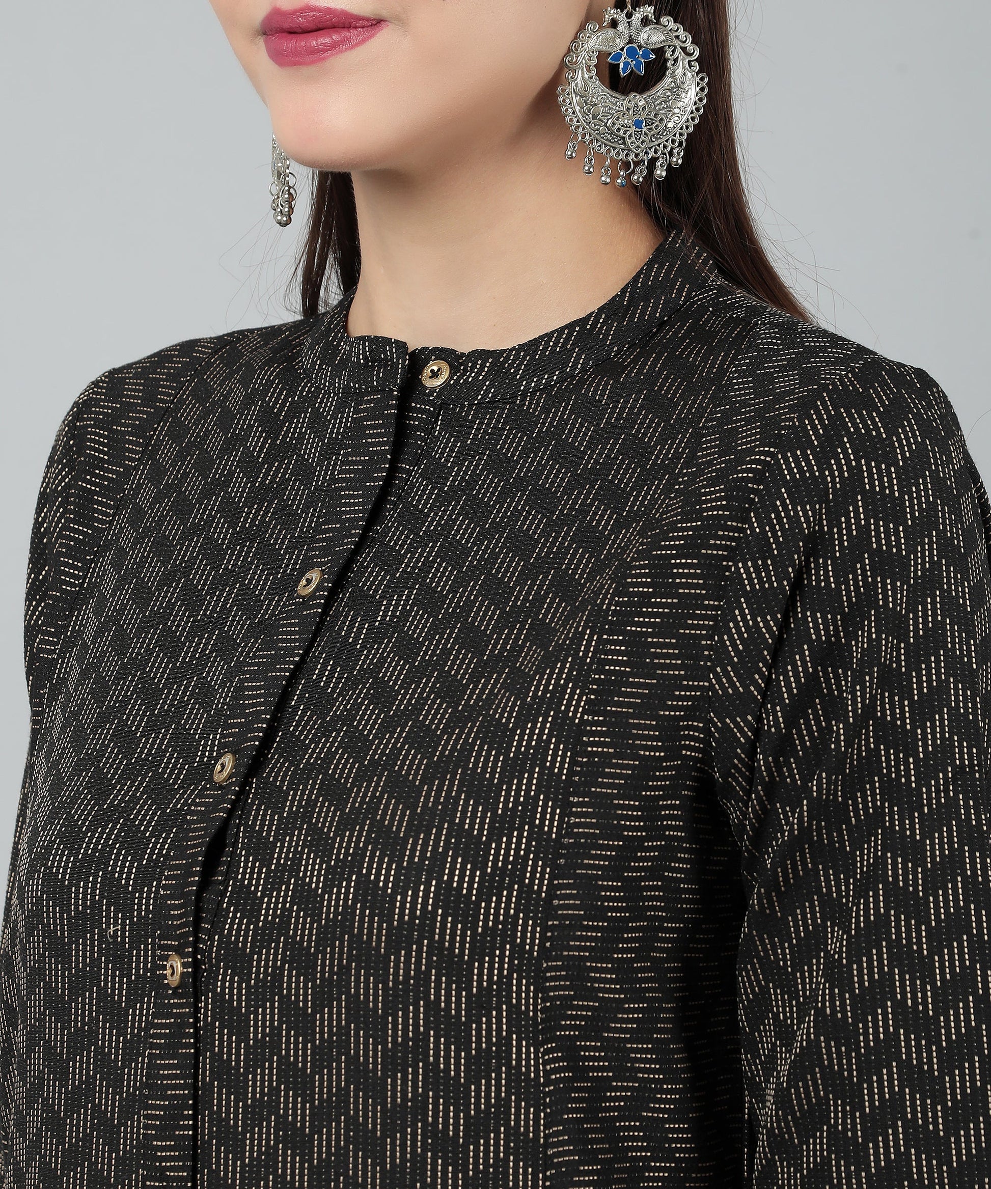 Self Weaved A-line Dress for Women Open Button Design,Black