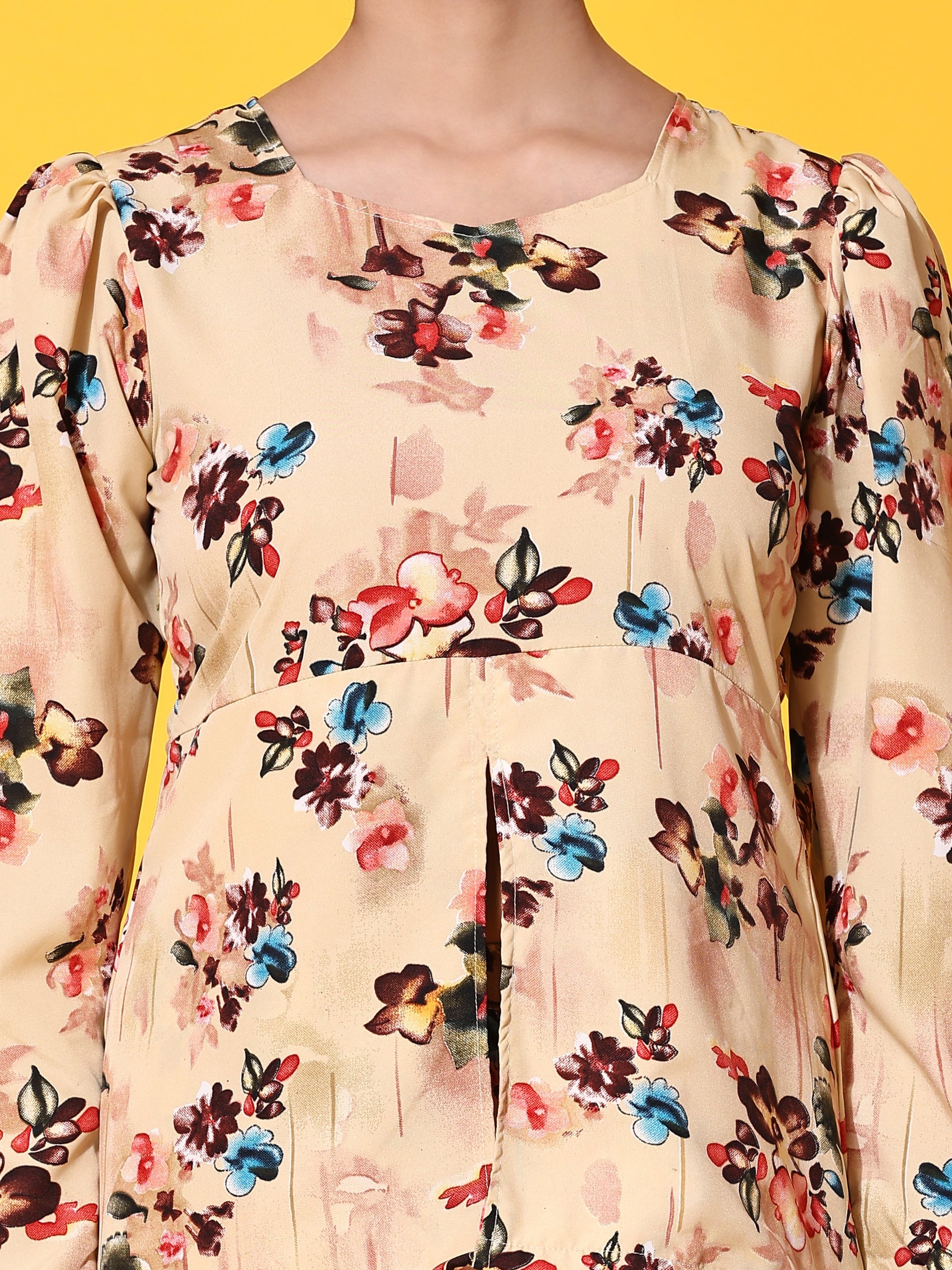 Stylish Women's Co-ord Sets - Printed Peplum Top With Plazzo Pants(Beige)