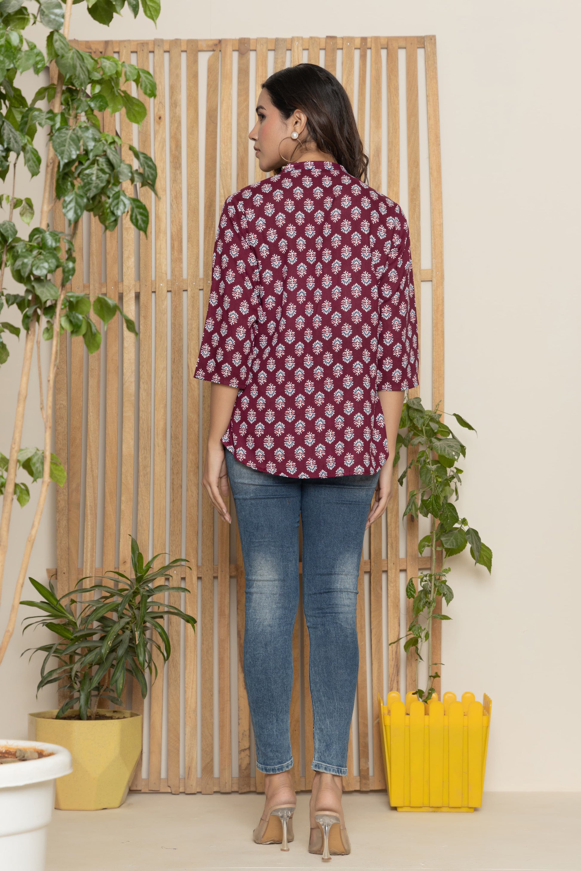 Women's Kurti & Tops| Stylish, Latest Cotton Kurti, Top Collection(Wine Butta)