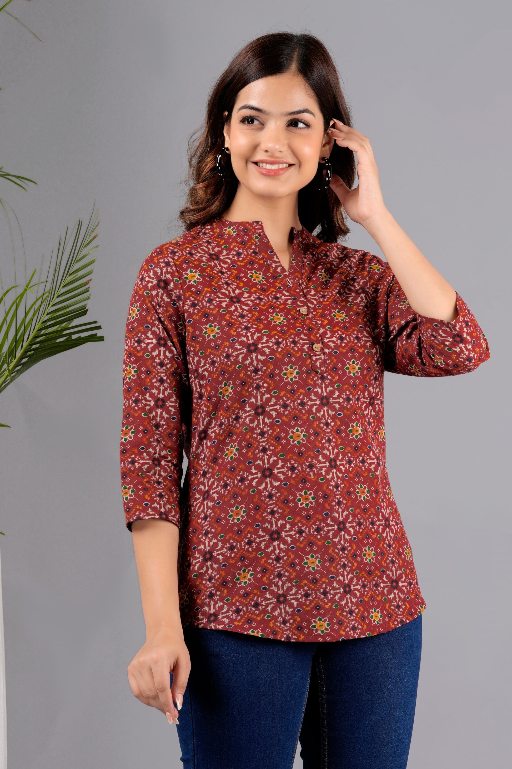 Discover the epitome of style with Anushil's exquisite collection of women's tops. Our range boasts the latest trends, ensuring you stay ahead in the fashion game. Crafted from premium cotton, our tops offer unrivaled comfort and durability, perfect for everyday wear.Explore our diverse selection of stylish tops for women, including chic short tops that add a touch of flair to your ensemble. Whether you're looking for a floral delight or a pure cotton classic, we have something for every taste.Step up your western wear game with our cute and fancy tops, ideal for casual outings or office wear. From party-ready party wear tops to sophisticated office wear staples, we have you covered for every occasion.Embrace the summer vibes with our breezy summer tops, crafted to keep you cool and stylish throughout the season. Pair them with your favorite jeans or shorts for a laid-back yet trendy look.Looking for something ethnic yet contemporary? Explore our range of kurti tops that effortlessly blend tradition with modern aesthetics. Perfect for pairing with jeans or leggings, these tops exude elegance and charm.Make a statement with our printed tops, available in a variety of eye-catching designs to suit your unique style. Whether you prefer bold graphics or subtle patterns, we have the perfect printed top for you.Experience the ultimate comfort and style with Anushil's collection of tops and tunics for women. Elevate your wardrobe with our versatile pieces that transition seamlessly from day to night.Shop now and discover why Anushil is your ultimate destination for trendy, stylish tops for women.